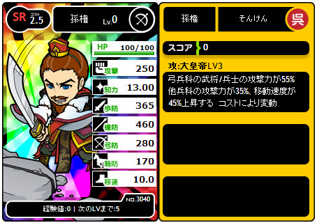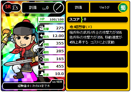 これが、同じシリーズの曹操だったら、隠しが飛将だったのでちょっと残念。
